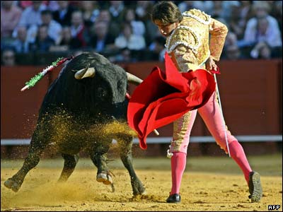 فرناندز پیندا، ماتادور اسپانیایی در مسابقات گاوبازی سویل در اسپانیا.