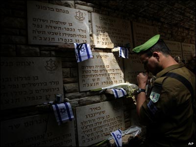 سرباز اسرائیلی در مراسم بزرگداشت سالانه سربازان کشته شده اسرائیلی در درگیریهای داخلی این کشور که روز دوشنبه در بیت المقدس برگزار شد.