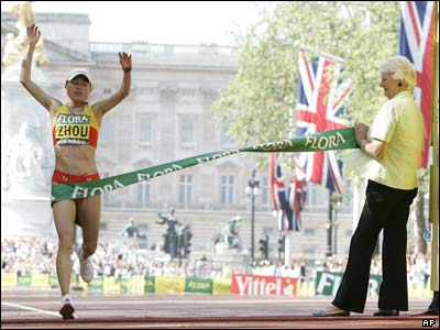 ژو چانزیو دونده چینی، در بیست و هفتمین ماراتون لندن را با زمان دو ساعت و 20 دقیقه و 38 ثانیه اول شد.