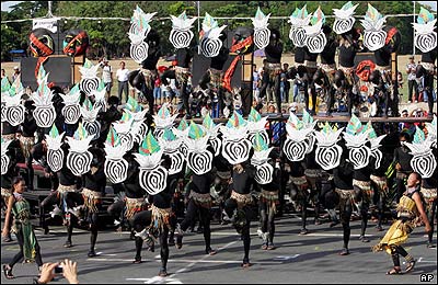 فیلیپینی ها با لباس های بومی در مسابقه ای در مانیل شرکت کرده اند. از 20 گروهی که نماینده نقاط مختلف فیلیپین هستند یک گروه برنده جایزه ای که معادل 21 هزار دلار است خواهد شد