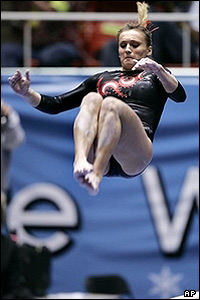 داریا بایاک، ژیمناست تیم دانشگاه یوتا، در رقابت های ژیمناستیک قهرمانی دانشگاه های آمریکا در رشته زنان اجرای برنامه می کند.