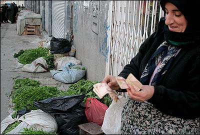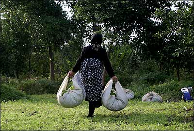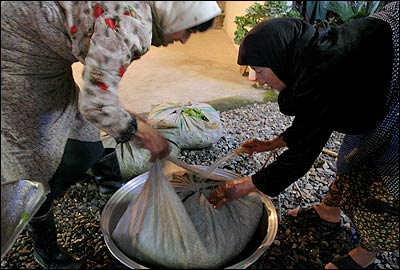 نزدیک غروب خورشید، هر کس سبزیهایی را که چیده در گونی بسته بندی می کند. درآمد حاصل از فروش هر بسته، بسته به وضعیت بازار بین ۳ تا ۴ هزار تومان است.