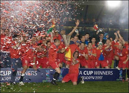 تیم سه ویا در فینال رقابت های فوتبال جام یوفا اسپانیول، دیگر تیم اسپانیایی، را در ضربات پنالتی شکست داد تا برای دومین سال پیاپی عنوان قهرمانی این مسابقات را از آن خود کند.
