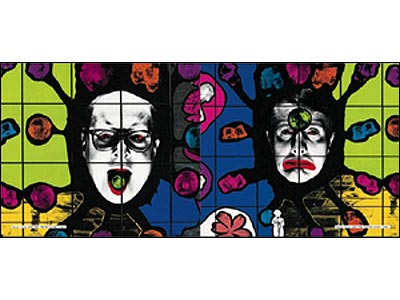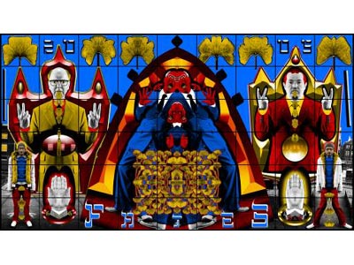 گيلبرت و جورج هنرمندان بريتانيايی هستند که به تازگی نمايشگاهی از آثار 4 دهه فعاليت هنری آنها در موزه تيت مدرن لندن که از معتبرترين مؤسسات فرهنگی دنياست، به نمايش در آمده است. استفاده از رنگهای تند و زنده از مشخصات بارز کارهای اين دو هنرمند است.