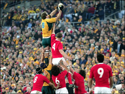 راکی السام از استرالیا در مقابل تيم ولز بالاتر از همه توپ را در اختيار گرفته است. در مسابقات راگبی جام اتحاديه، ولز موفق شد استراليا را در خانه خودش شکست دهد.