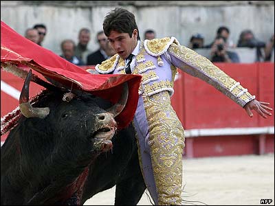 تصویری از سباستین کاستلا ماتادور فرانسوی، در آخرین روز از فستیوال گاوبازی 'نایمز پنتهکاست فریا' در جنوب فرانسه