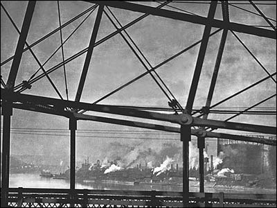 کار عظیم هاپ در ثبت یک دوران با تصاویر، به گفته خود وی، تمایلش را برای "کشف آمریکای واقعی" ارضاء می کرد. عکس یک منطقه صنعتی که از لابه لای میله های پل پیتسبورگ گرفته شده است (1926)