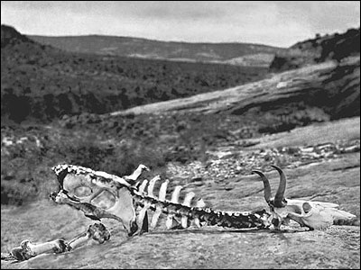 تصویری که آثار هاپ از آمریکا بدست می دهد بی طرفانه و با فاصله است. تصویری از یک اسکلت در صحرای 'دزرت هیل' ایالت آریزونا (1926)