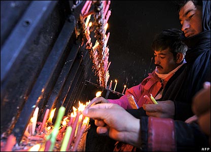 روشن کردن شمع در یکی از چهل نقطه برگزاری مراسم عزاداری در خرمآباد، ایران