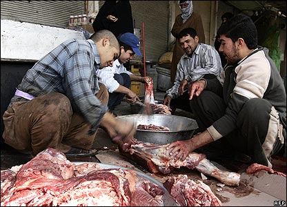 تقسیم کردن و پاک کردن گوشت های قربانی در نجف، عراق
