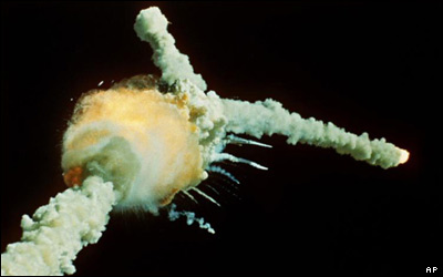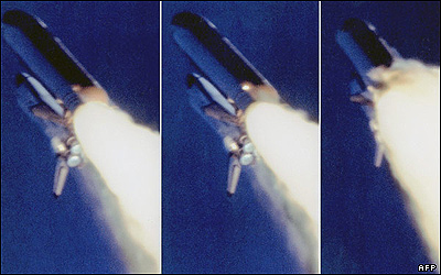 دقيقا ۷ ثانيه بعد از پرتاب شاتل فضايی چلنجر، دود غليظی مشاهده شد که به دنبالش صدای چندين انفجار شنيده شد.