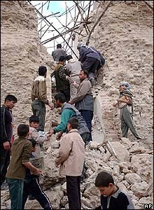 مردم محلی آوار را در جستجوی اجساد احتمالی و کارهای گرانبهای هنر مذهبی می کاوند