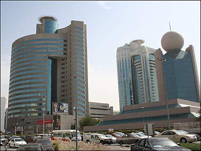 برج اتصالات در منطقه "ديره". شرکت اتصالات تنها شرکت ارائه خدمات موبايل در امارات متحده عربی است. |