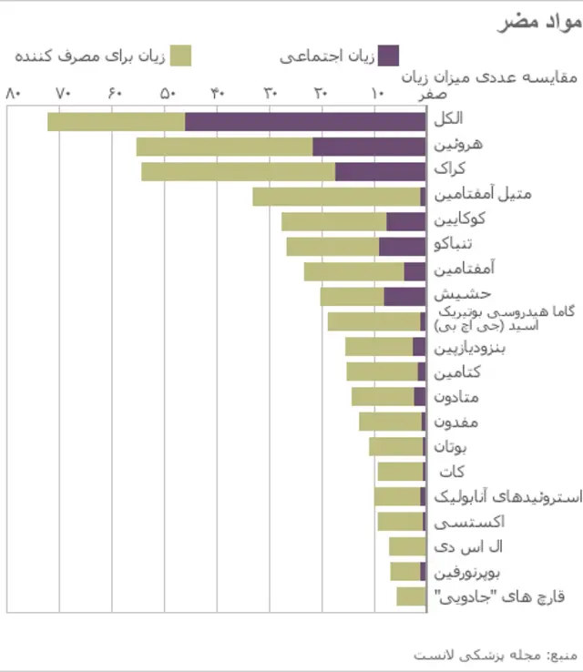 نتیجه این تحقیقات این بود که روی هم رفته زیان الکل به مراتب بیشتر از هروئین و کراک است.