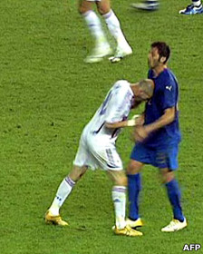 مثال مشهور چنین کاری، در فینال جام جهانی ۲۰۰۶ میلادی رخ داد؛ وقتی که زینالدین زیدان با سر به سینه مارکو ماتراتزی کوبید و از بازی اخراج شد.