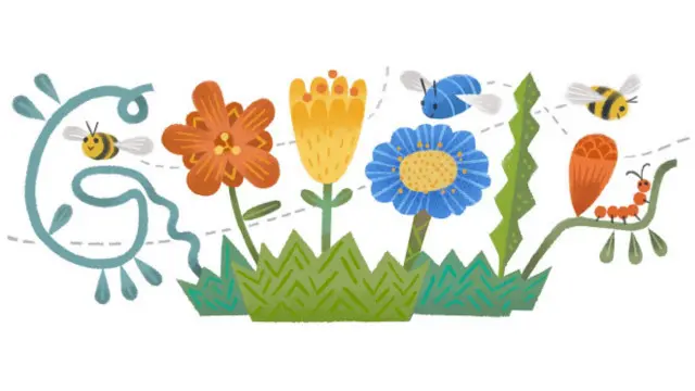 همچنین گوگل به مناسبت اولین روز بهار نشان دیگری طراحی کرده که در آن گلهای مختلف به شکل نشان گوگل درآمدهاند.