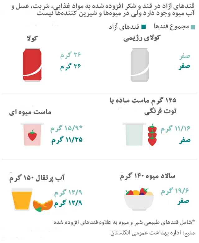 او در گفتگویی با بی بی سی گفت که طبق توصیه ها ما باید مصرف مواد قندی را کاهش دهیم و بیش از پنج درصد از کل کالری روزانه مان را از محل قندهای آزاد کسب نکنیم.