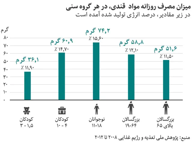هم اکنون میزان متوسط مصرف قند و شکر در همه گروه های سنی دو برابر این مقدار است.