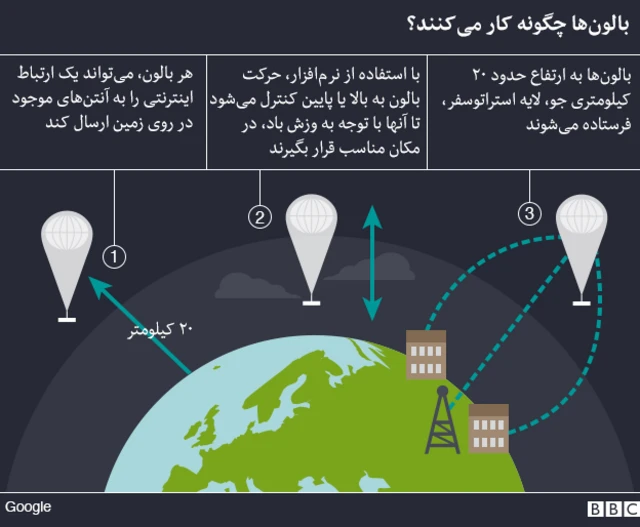 در "طرح لون" گوگل، مجموعهای از بالونها در ارتفاع شصت هزار پایی (هجده هزار متری) بالای زمین، علایم پرسرعت اینترنتی را مخابره میکنند.