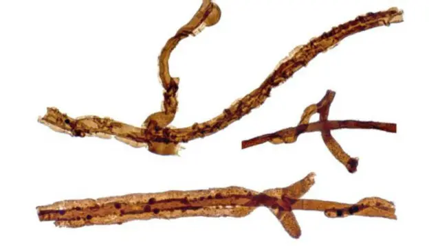 طول هر یک از این فسیل های ذره بینی کمتر از قطر موی انسان است و ساختمان طناب-مانند آن شبیه قارچ های امروزی است.