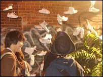 در "گذر فلاسفه" ( Philosopher's walk) .واقع در دانشگاه تورنتو، هنرمند ژاپنی خانم فوجیکو ناکایا مجسمه های مخصوص خود را تحت عنوان مه به منظرعموم گذاشته بود. این هنرمند که ساکن توکیو است به مه علاقه زیادی دارد و مجسمه هایی که به مناسبت شب سفید ارائه داد در اصل ایجاد مه مصنوعی بود و تقاضا از رهگذران که از مه هایی که درست کرده عبور کنند . فوجیکو مه می کرد و وقتی مه به اندازه کافی غلیظ می شد رهگذران اجازه داشتند که از آن عبور کنند. به گفته هنرمند این امر افراد رابا طبیعت آشتی می دهد. بخش دوم در محدوده خیابان های McCaul و University صورت گرفت. این منطقه تعداد زیادی استخر شنای عمومی، پارک و مکان های عمومی و کتابخانه و موزه را در خود جای داده است. همچنین مراکز مهم هنری مانند دانشکده هنر و گالری هنر انتاریو و سینماتک انتاریو هم در این محدوده قرار دارند. در هرکدام از این ساختمانها هنرمندانی نمایش عمومی داشتند.