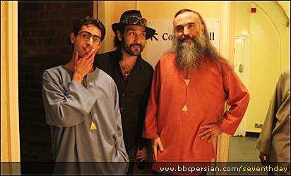 نکته جالب و به یاد موندنی کنسرت آزاد در لندن انتخاب همنوازهاش بود که شامل یه پسر نوجوان سیاهپوست انگلیسی (Adrean)هم می شد که عضو گروه ارکستر جوانان لندن بود و در کنسرت اخیرش که بهمراه این ارکستر در سالن بزرگ رویال البرت هال اجرا کرده بود و باهاش آشنا شد. همینطور استاد تبله هندی و سازهای کوبه ای، تی پک، آدم شوخ و با حالی بود و بیشتر خارجیها می شناختنش و باورشون نمی شد که در این کنسرت تبله می زنه! از همراهیه علی نوربخش هم باید یادی بکنم . از دف زنهای جوان لندنه و با گروه سیمرغ کار می کنه و خودش کلاس دف داره . کنسرت خوش گذشت. نقص فنی صدا در قسمت دوم بهتر شد. یکی دو بار خود داود جان میکرونها رو با اخم جابجا کرد که صدا بهتر بشه. آخرش یه آهنگ ترکی خوند که خیلی حال دادو بعدش هم همون آهنگ رو به فارسی خوند که دیگه همه براش دست آخر رو زدن و کنسرت مولانا به پایان رسید. |