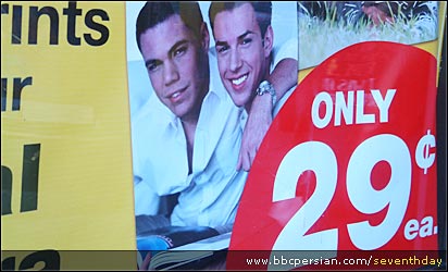 "درمحله "کاسترو" سان فرانسيسکو، تقريبا همه مغازه به تبليغات کالاهايی قابل استفاده برای همجنسگرايان می پردازند.