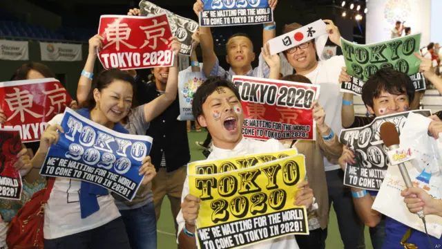 توضیح تصویر، لحظهای که نام توکیو به عنوان میزبان بازیهای تابستانی ۲۰۲۰ اعلام میشود.