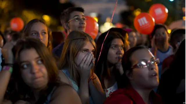 توضیح تصویر، با اینکه زمان اعلام خبر میزبانی توکیو در ژاپن پنج صبح بود، بسیاری از ژاپنیها برای مطلع شدن از نتیجه بیدار مانده بودند.