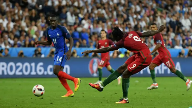 اما در دقیقه ۱۰۹ بازی این ادر بود که سرانجام توانست هوگو لوریس، دروازهبان فرانسه، را تسلیم کند. او که متولد گینه بیسائو است تبدیل به تنها بازیکن متولد خارج از اروپا شد که در فینال یورو گل زده است.