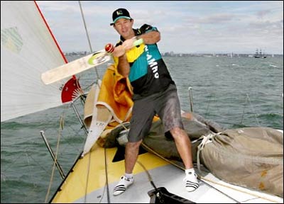 ضربه به توپ کريکت از طرف ريکی پانتينگ، در يک مراسم تشريفاتی روی قايق در ملبورن استراليا