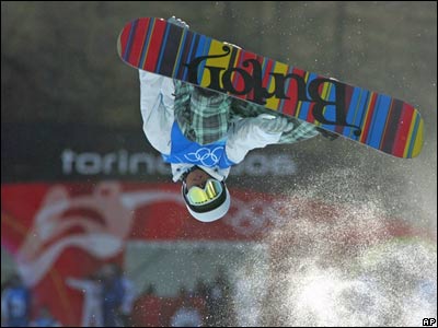 تاکاهورا ناکایی از ژاپن در حال تمرين اسنوبورد، قبل از المپيک تورين که امروز در ايتاليا افتتاح خواهد شد. |