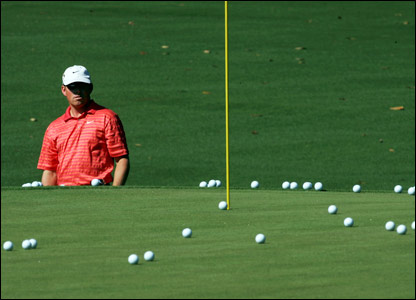 جاستين لئونارد در تمرينات قبل از مسابقات گلف مسترز جورجيا