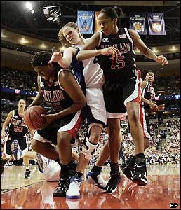در فينال مسابقات بسکتبال دختران دانشگاههای آمريکا معروف به NCAA که شب گذشته در بوستون برگزار شد، تيم مريلند با نتيجه 78-75 تيم دوک را شکست داد و به مقام قهرمانی دست يافت.