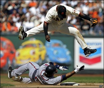 پيروزی سن فرانسيسکو جاينتز در برابر آتلانتا بريوزدر مسابقات بيس بال، که در سن فرانسيسکو برگزار شد.