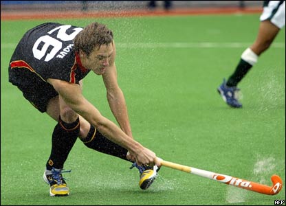 بنيامين ون هوو از بلژيک در رقابتهای هاکی روی چمن بين اين تيم و پاکستان |