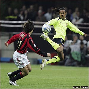 در مسابقات نيمه نهايی فوتبال قهرمانی اروپا، بارسلون با تک گل نيمه دوم ژولی آث ميلان، ميزبان اين مسابقه، را در ورزشگاه سن سيرو اين شهر شکست دهد.