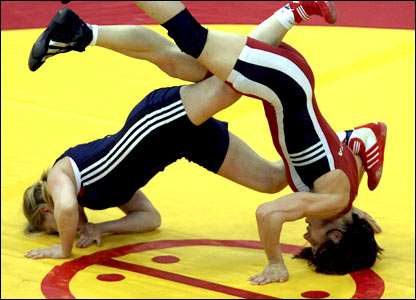 رقابت کشتی 55 کيلوگرم زنان در مسکو، بين ماريا مارکويچ از بلاروس و فرانسين دوپاولا از ايتاليا برای کسب مدال برنز