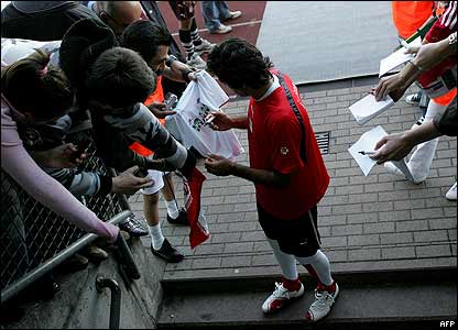 مهرزاد معدنچی در حال امضای تی شرت يکی از طرفداران ايران |