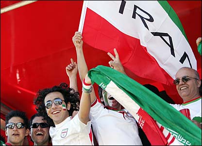 طرفدار ايران پيش از مسابقه در ورزشگاه فرانکن شادی می کنند