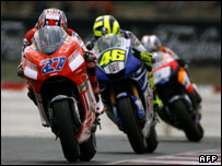 کیسی استونر راننده استرالیایی تیم دوکاتی در هفتمین مرحله مسابقات موتوگراندپری در کاتالونیای اسپانیا، ولنتینو راسی را در سایه خود نگه داشت و به مقام اول رسید. دنی پدروسا راننده محلی تیم هوندا نیز در خانه خود سوم شد. ولنتینو راسی، راننده ایتالیایی تیم یاماها و قهرمان هفت دوره مسابقات موتوگراندپری (رده های مختلف، ۱۲۵ سی سی به بالا) که در روز زمان گیری، کمترین زمان را کسب کرده بود از مکان اول، مسابقه را استارت زد. اما در همان دور اول استونر از او و پدروسا سبقت گرفت و تا 17 دور از بقیه جلوتر رانندگی می کرد. در طول مسابقه سه بار راننده ای که از همه جلوتر بود موقعیتش عوض شد. راسی تا آخرین لحظه تلاش کرد تا برای آخرین بار از او سبقت بگیرد و اول شود ولی استونر با بستن راه، داشتن سرعت و قدرت کافی در دوکاتی اش در مسیرهای مستقیم و کنترل آرامش در لحظه های آخر این امکان را از راسی برای اول شدن گرفت. استونر گفت: "همون کاری را که او قبلا برای پیروزی با من می کرد با او انجام دادم و راهش را بستم. برای من رفتن به سکوی اول تا سوم کافی بود اما بردم، بهتر از این نمی شد." این چهارمین پیروزی استونر در هفت مسابقه فصل جدید بود و با این پیروزی توانست 14 امتیاز از راسی در جدول قهرمانی پیشی بگیرد. |