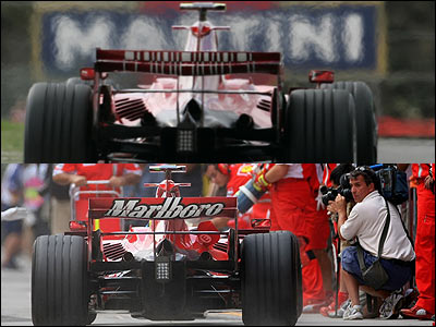 فراری تنها تیم باقی مانده در فرمول یک است که به تبلیغ دخانیات ادامه می دهد (عکس پایین). قرارداد عمده این تیم با شرکت فیلیپ موریس (تولید کننده سیگار مارلبورو) که عمده ترین قرارداد جذب پول تبلیغات برای تیم فراری است، باعث شده است که فراری بجز در بحرین و چین، بر روی باله عقب اتومبیل های خود، تنها طرحی گرافیکی را برای حفظ فضای تبلیغات مارلبورو بکارگیرد (عکس بالا).