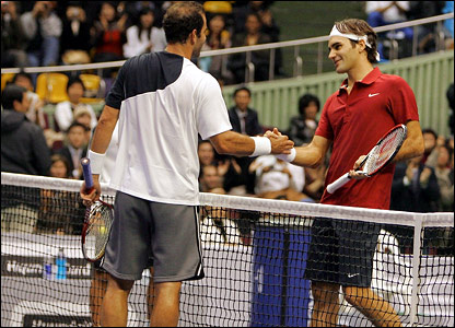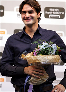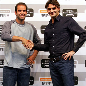راجر فدرر، تنیس باز شماره یک جهان در مسابقه نمایشی در پایتخت کره جنوبی، پیت سمپراس، شماره یک پیشین جهان را در دو ست شکست داد. این دو تنیس باز تنها یک بار، در دور چهارم مسابقات ویمبلدون سال 2001 با هم مسابقه داده بودند که در آن مسابقه فدرر سویسی سمپراس را در پنج ست شکست داد. سمپراس در سال 2002 و پس از کسب 14 مقام گرند اسلم بازنشستگی خود از مسابقات تنیس حرفه ای را اعلام کرد. فدرر که تا کنون 12 عنوان قهرمانی گرند اسلم را کسب کرده است، تنها دو روز قبل در مسابقات تنیس جام مسترز قهرمان شد.