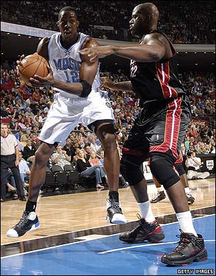 در کنفرانس شرق اورلاندو (3 برد در هفته چهارم) درست پشت سر بوستون قرار دارد. حتی شکیل اونیل، سنتر باسابقه میامی (که در ان بی ای با تیم اورلاندو آغاز کرد) هم در مقابله با قدرت دوایت هاوارد (چپ) مشکل داشت. سنتر چابک اورلاندو با 14.4 ریباند در هر بازی بهترین ریباندر ان بی ای محسوب می شود و 22.5 امتیاز هم کسب می کند.