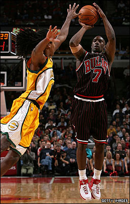 شیکاگو دیترویت را شکست داد تا گامی دیگر در جهت بازگشت به موقعیت فصل قبل خود برداشته باشد. از آنجا که این تیم از نظر بازیکنان نسبت به فصل گذشته دچار تحولی عمده نشد، به نظر می رسد مشکل این تیم بیشتر روحی باشد تا فنی و تاکتیکی. درصد شوتهای آنها نسبت به فصل قبل دچار کاهشی محسوس شده است. بن گوردون گارد بریتانیایی این تیم کماکان بیشترین امتیاز را برای این تیم کسب می کند، هر چند نسبت به فصل قبل میانگین امتیازات او 4 امتیاز کاهش یافته است. |
