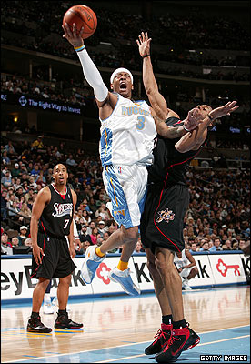 آلن آیورسون بهترین بازیکن کنفرانس غرب در یک هفته گذشته بود. این گارد کوتاه قامت و چابک تیم دنور، در سه مسابقه به میانگین 33.3 امتیاز در هربازی دست یافت و آمار شوت دو امتیازی خود را به بالای 53 درصد رساند. در کنار این بازیکن پرکار، تیم دنور در کل لیگ NBA، در صدر جدول تیمی توپ ربایی و رتبه سوم ریباند قرار دارد و از نظر کسب امتیاز هم حضور کارملو آنتونی به صعود این تیم به رتبه چهارم لیگ با 106.7 امتیاز در هر مسابقه کمک کرده است.