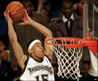 جرالد گرین بازیکن مینه سوتا، رقابت در دانک را به اوج رساند و در آخرین دانک خود، پیش از کوبیدن توپ در سبد، شمعی را فوت کرد.