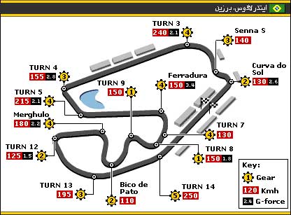 بعضی از پیچ های این پیست کمی ترسناکند و تماشاچیان علاقه مند به فرمول یک را از روی صندلی خود بلند می کند. اینترلاگوس در حقیقت نسخه کوتاه شده ای از پیست کلاسیک اینترلاگوس است که پیشینه ای طولانی در مسابقات فرمول یک دارد. رانندگان در این پیست باید برخلاف جهت ساعت رانندگی کنند که این موضوع کار آنها را سخت تر می کند. البته بعضی دست اندازهای این پیست هم در مشکل کردن کار رانندگان بی تاثیر نیست. این پیست چند پیچ عالی و یک مسیر مستقیم طولانی دارد که هر مسابقه ای را جذاب می کند. |