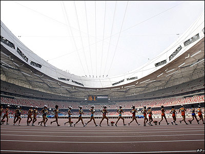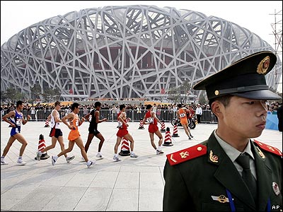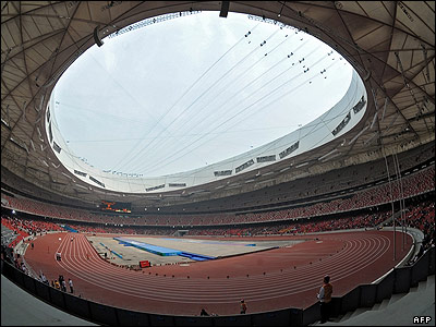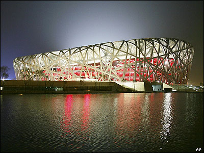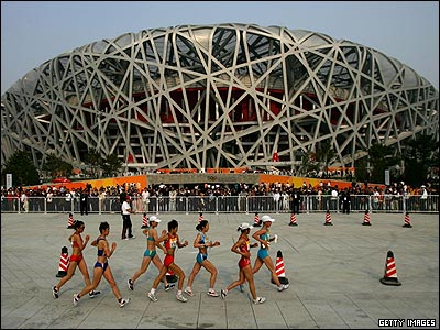استادیوم موسوم به 'آشیانه پرنده' با برگزاری یک مسابقه راهپیمایی 20 کیلومتر افتتاح شد. جرد تلنت، ورزشکار 23 ساله استرالیایی، توانست در زمان یک ساعت و 20 دقیقه و 11 ثانیه از خط پایان عبور کند و اولین برنده یک مسابقه در این ورزشگاه منحصر به فرد نام بگیرد. این استادیوم که مراسم افتتاحیه و اختتامیه المپیک پکن در آنجا برگزار خواهد شد، یکی از دو ورزشگاهی است که به واسطه شیوه طراحی، به نمادهای شهر پکن تبدیل شده اند.