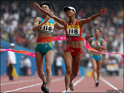 لیو هونگ از چین، هم با پیروزی در مسابقه راهپیمایی 20 کیلومتر عنوان اولین برنده زن یک مسابقه در استادیوم "آشیانه پرنده" را تصاحب کرد.